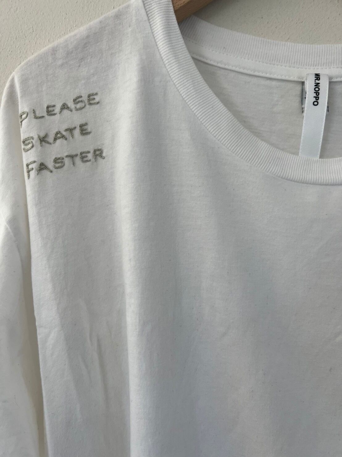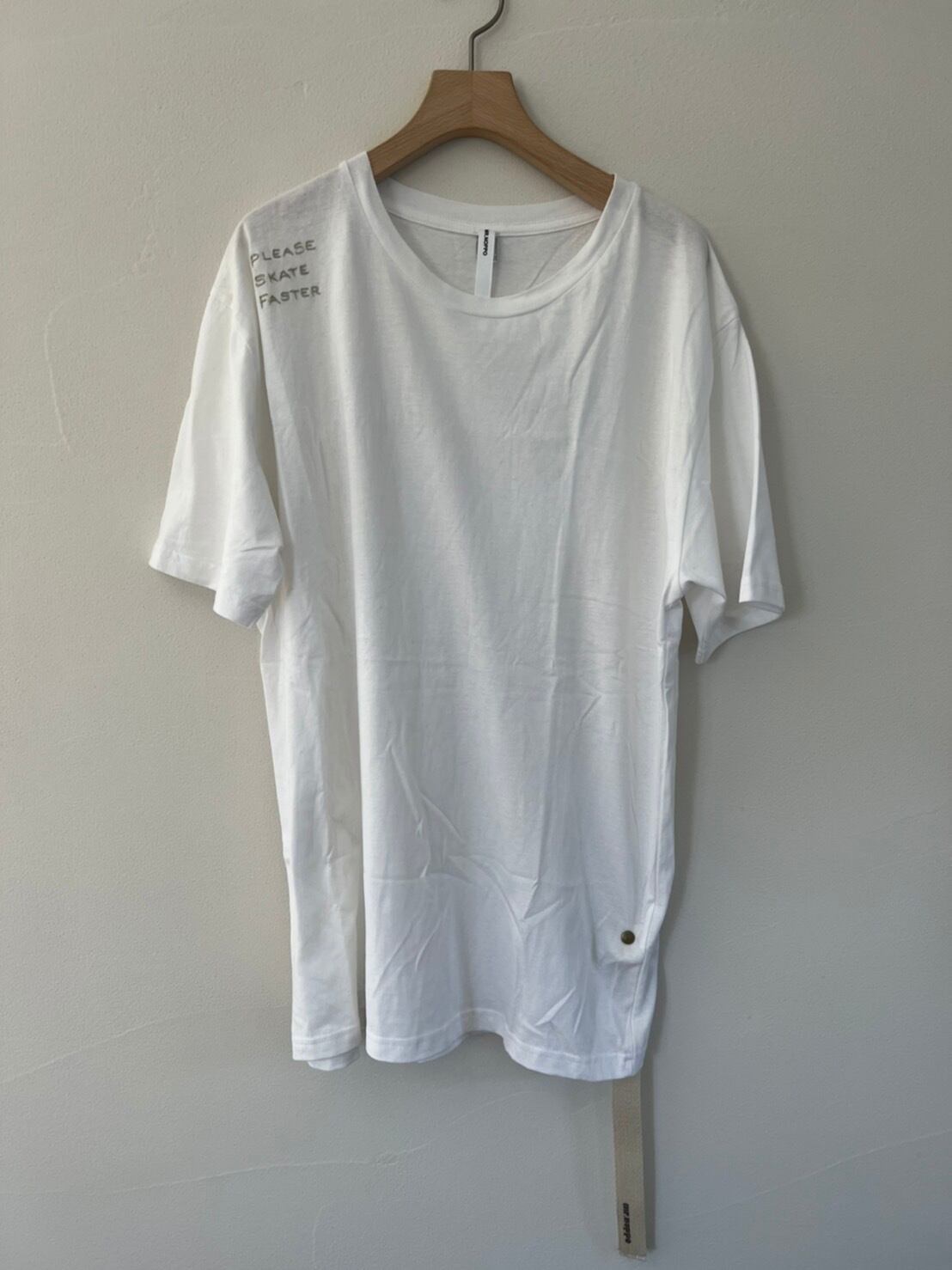 Please Skate Faster, Hand Embroidered, 100% Organic Cotton T - White